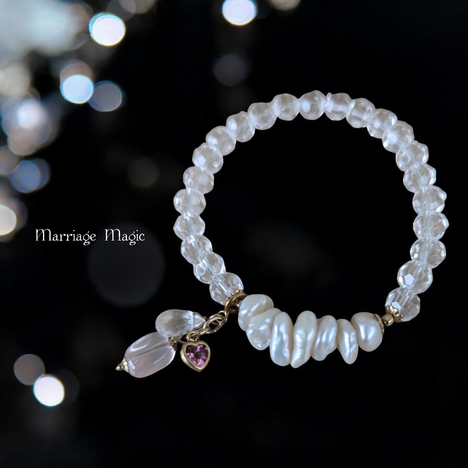 {成婚までのお守り・運命を信じる}一点物LOVE引き寄せパール・水晶ブレスレット